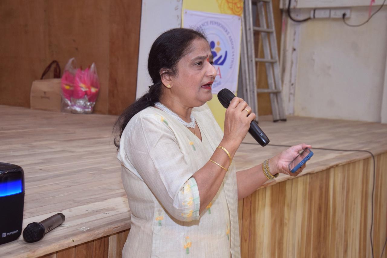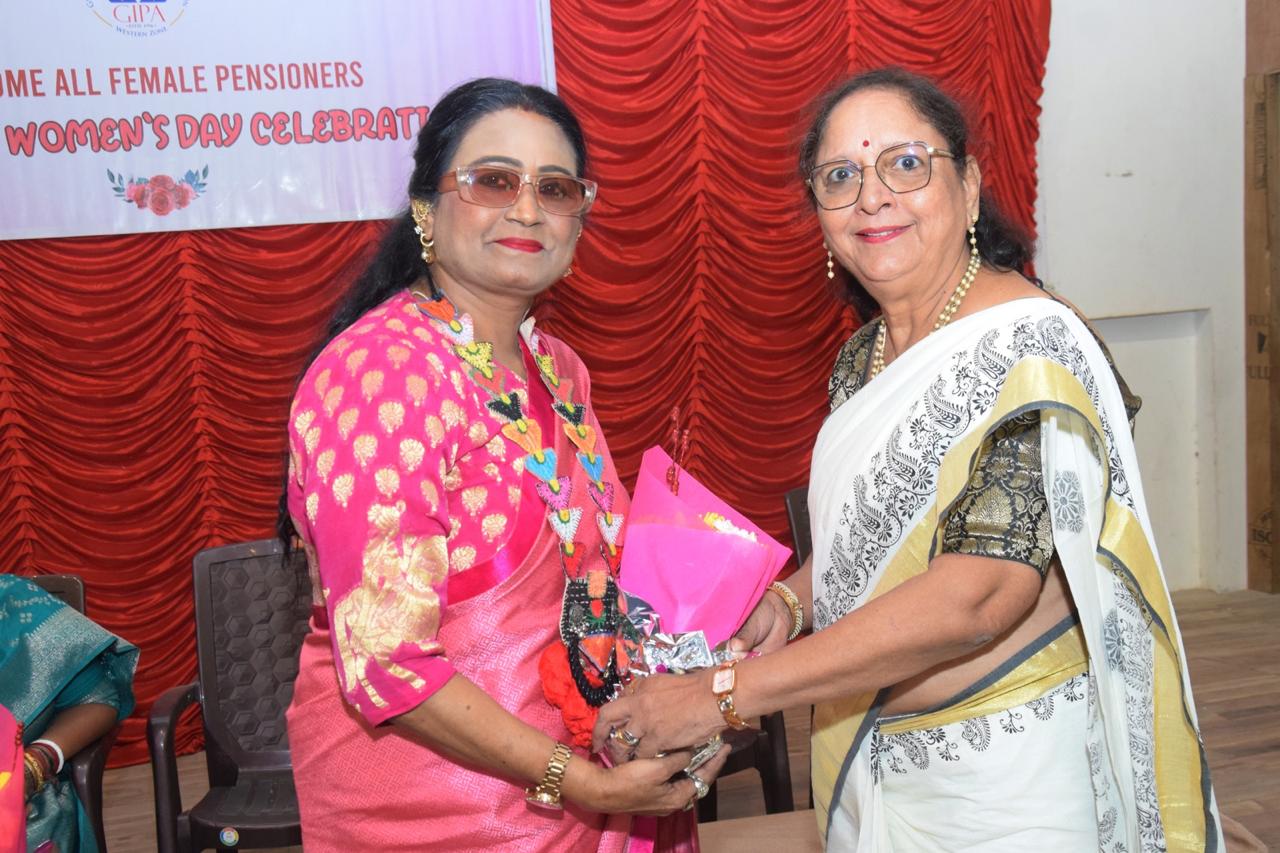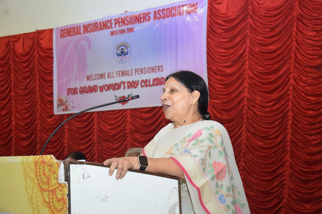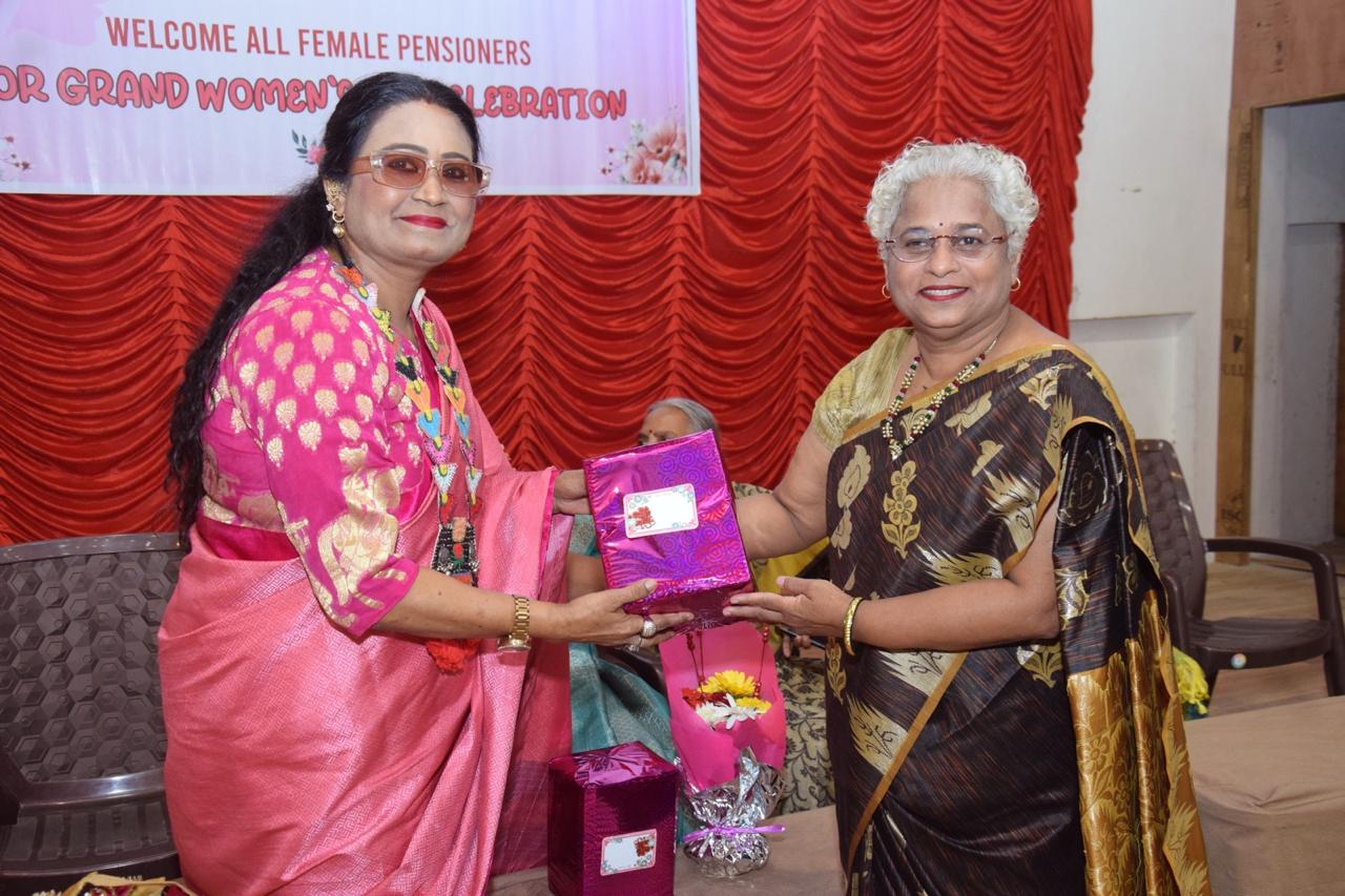 Women's Day program organised by GIPA W. Z Mumbai unit on 9th March at Marathi Patrakar Sangha Hall, near CSTM. Around 150 women pensioners attended.